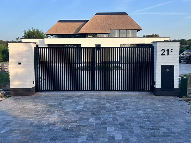 Inlooppoort met dubbele functie. Deze poort sluit aan 2 kanten. De entree naar de woning is super geworden.